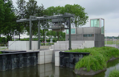 wijk Vleuterweide en een aanvoerfunctie voor het landelijk gebied. Zodoende is een multifunctioneel gemaal ontstaan ten behoeve van zowel het stedelijk als het landelijk gebied met een capaciteit van 60 m3 /min. voor het stedelijk en 32,5 m3/min. voor het landelijk gebied. De aanvankelijke keuze voor schroefpompen werd verlaten ten gunste van twee visvriendelijker vijzels met een door het waterschap ontworpen – en gepatenteerde – aangepaste visvriendelijke instroomvorm. Naast het gemaal is tevens een De-Wit-vispassage aangebracht. De aandrijving van de vijzels verloopt via frequentiegeregelde elektromotoren zodat, afhankelijk van de behoefte, ook met kleinere capaciteiten gepompt kan worden. Het gemaal werkt volautomatisch en is op afstand bedienbaar. Het ontwerp van het gemaalgebouw is tot stand gekomen door middel van een prijsvraag, waaraan drie vooraf geselecteerde architectenbureaus hebben deelgenomen. A+D+P Architecten werd hierbij met hun ontwerp als winnaar verkozen. Dit ontwerp zal ook leidend zijn bij het ontwerp van de nog te realiseren overige vier gemalen.