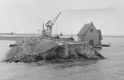 Bij de watersnoodramp in de nacht van 31 januari op 1 februari 1953 braken de dijken bij het gemaal op meerdere plaatsen door. Rondom het gemaal ontstonden door het in- en uistromen van het water enorme stroomgaten. De schade bleek uiteindelijk zo groot dat het alleen met behulp van betonnen caissons lukte een nieuwe zeedijk te maken, die enige honderden meters landinwaarts kwam te liggen. Het gemaal kwam daardoor buitendijks in de Oosterschelde te liggen en moest gesloopt worden.