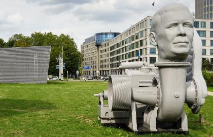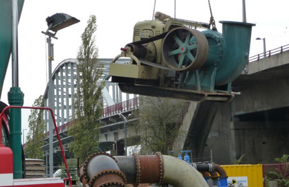In 1945 werd op de plaats van een in de oorlog verwoest stoomgemaal bij de latere John Frostbrug een noodgemaal gebouwd, met een installatie bestaande uit een Worthington schroefcentrifugaalpomp en een GM of Cummings dieselmotor. Het gemaal had een capaciteit van ca. 50 m3/minuut en diende voor de bemaling van de Arnhemse binnenstad. Omdat het water niet meer onder vrij verval kon worden afgevoerd stichtte de gemeente Arnhem in 1965 een nieuw gemaal ten oosten van de brug, waarin de oude installatie als noodpomp werd teruggeplaatst, uitgebreid met twee elektrisch aangedreven Pannevis schroefpompen voor de reguliere bedrijfsvoering. In 1976 werden er door het Zuiveringschap Oostelijk Gelderland tevens nog twee rioolwaterpompen bijgeplaatst, zodat het Rijngemaal zowel als poldergemaal als rioolgemaal in gebruik kwam. In 2012 werd het Rijngemaal gesloopt en vervangen door een nieuw, gelijknamig rioolgemaal. De oude Worthingtonpomp werd opgenomen in een kunstwerk dat naast het gemaal werd geplaatst.