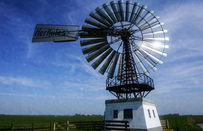 Amerikaanse windmolen, enige tijd uitgerust geweest met Armstrong-Siddeley tweecilinder dieselmotor naast windkracht.