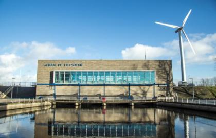 Boezemgemaal De Helsdeur is in 1973 in gebruik genomen. Het ontleent zijn naam aan de geul naar zee die in het verlengde ligt van het Nieuwe Diep en het Marsdiep. Het gemaal zorgt samen met het Zaangemaal in Zaandam, voor de bemaling van de Schermerboezem waarop circa 1.150 km2 polder- en duingebied loost. De hoofdtoevoer naar het gemaal verloopt via het Noord-Hollandskanaal. Geloosd wordt op Het Nieuwe Diep, dat via de Nieuwe Haven in open verbinding staat met het Marsdiep. Oorspronkelijk was het gemaal uitgerust met vier Pannevis schroefcentrifugaalpompen met betonnen slakkenhuis. Deze werden via Flender haakse tandwielkasten aangedreven door Brons 6 GB dieselmotoren. De capaciteit was 4 x 600 m3 per minuut bij een opvoerhoogte van 1,25 m. Daarnaast kon via vier kokers naast de pompen onder vrij verval geloosd worden.