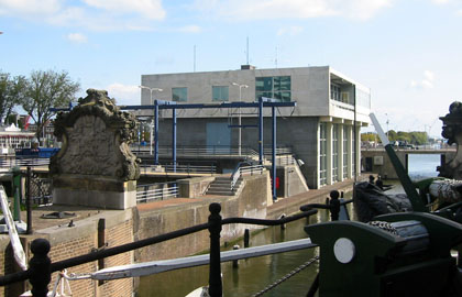 normen. De langdurige bouwperiode van het gemaal was het gevolg van de – enig mogelijke – situering, op een smalle landtong tussen een tweetal sluizen, de Wilhelminasluis en de historisch waardevolle Grote- of Hondbossche sluis in het hart van Zaandam. De bestaande bebouwing, met inbegrip van het havenkantoor van de gemeente, moest hiervoor afgebroken worden. Deze ruimte